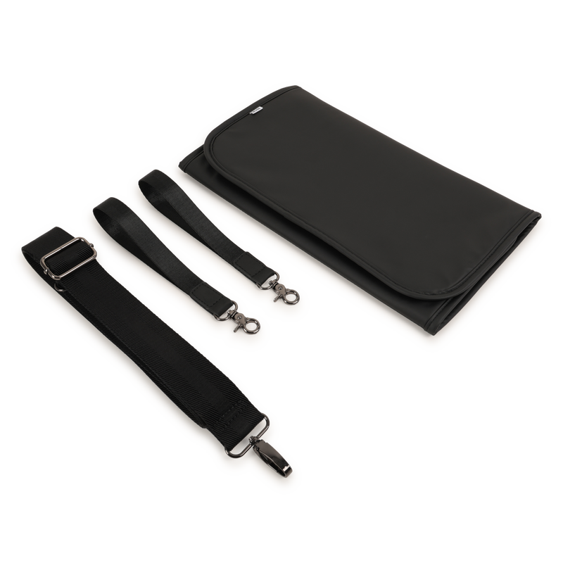 This BOSS diaper bag made of matte-coated textile combines elegance and functionality. The changing mat, the stroller attachments and the removable strap guarantee great practicality. With its side water bottle pockets with snap closures, its well-organized interior with elasticated openwork mesh compartments and its washable lining, it offers a complete solution for parents. The zipper and reinforced base with rivets ensure security.